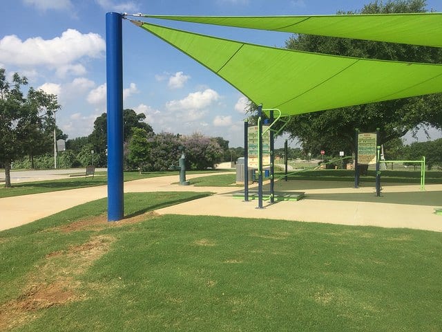 Park at the intersection of Darren G. Medlin Trail and Oak Grove Loop and enjoy all that this trail has to offer including a large workout station covered with shade canopies.