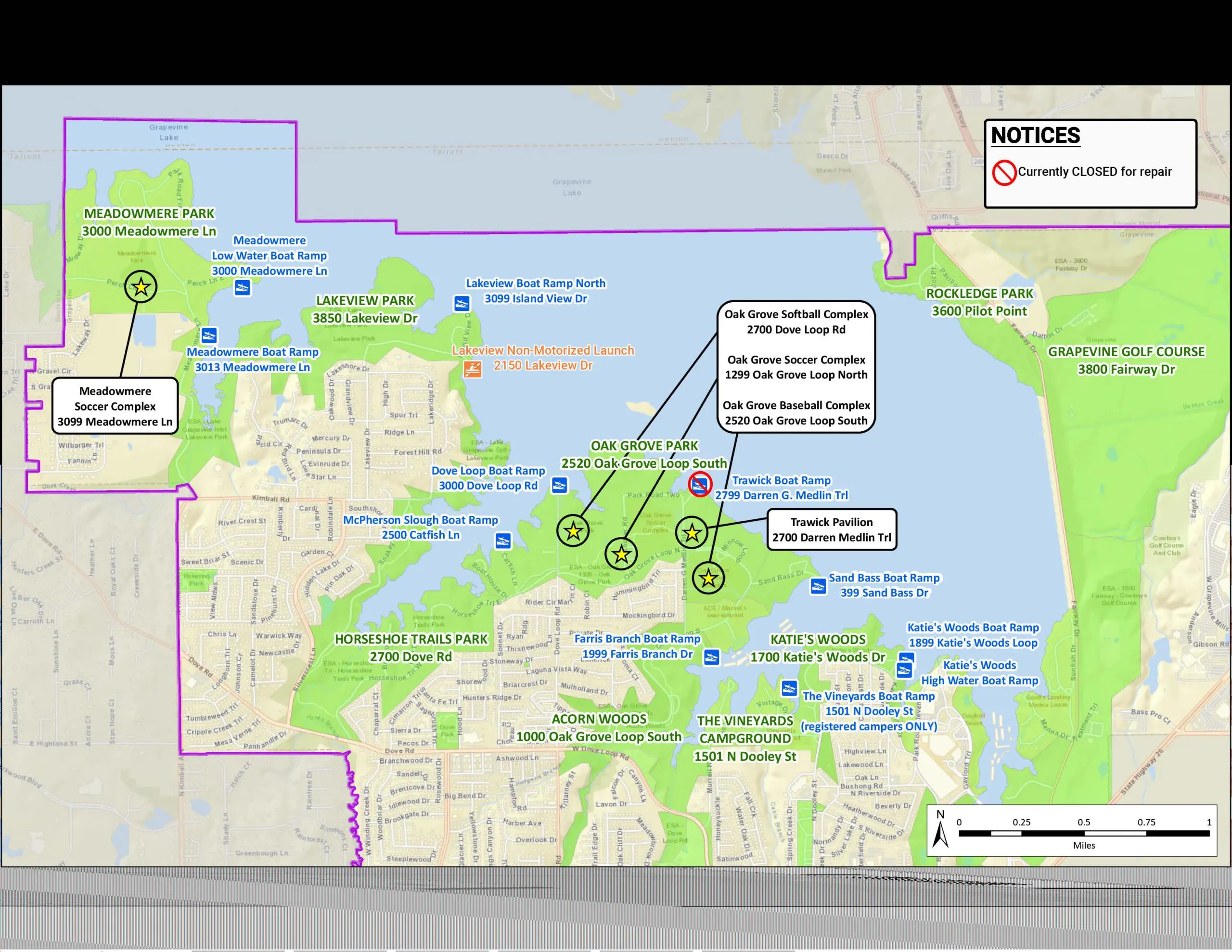 To view the most up-to-date openings and closures of boat ramps on Grapevine Lake
