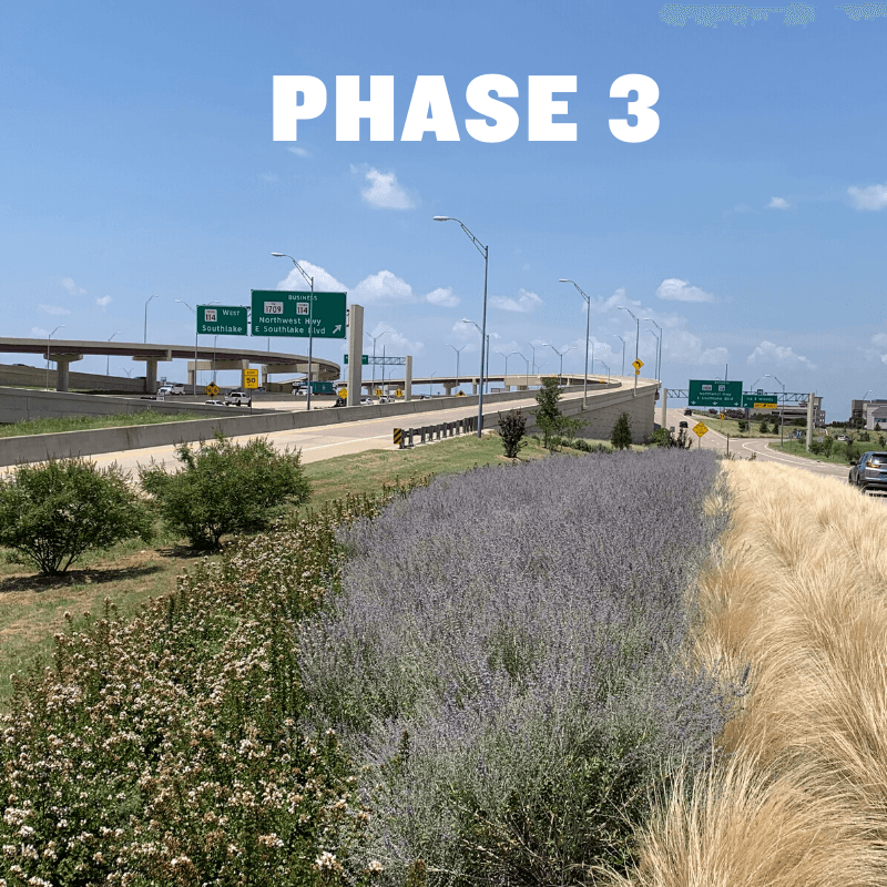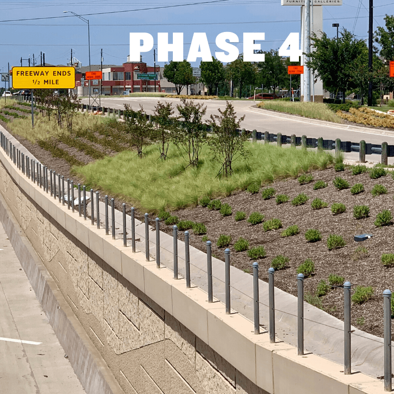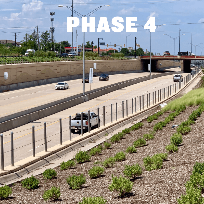 The SH 26 Landscape Enhancement Project is located along SH 26, spanning from Texan Trail to the FM 2499 Overpass, covering a distance of 2.3 miles. This phase aims to enhance the entertainment district, which includes Gaylord, Great Wolf Lodge, and Grapevine Mills, while also strengthening Grapevine’s streetscape identity in this vital corridor. The enhancement will be achieved through the use of native or adaptive trees, flowering shrubs, and ornamental grasses. Additionally, planter pots will be strategically placed along the medians to further pique interest. A total of 242 new trees will be planted along the corridor, augmenting beneficial canopy coverage for Grapevine. The overall cost for this phase amounts to $1,900,000, with the Texas Department of Transportation (TxDOT) committing $700,000 in funding through the Green Ribbon Program. Supplementary funding of $250,000 will be provided through the Governor Community Achievement Award, and an additional $150,000 will be sourced from the City’s Tree Mitigation Fund. The project is projected to conclude by the end of this year.