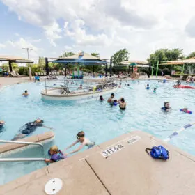 Two-hour rental of one reserved, covered area with nine lounge chairs and three picnic table near the sprayground. It will also include 7 large pizzas, 30 ice cream cups and 30 guest passes.