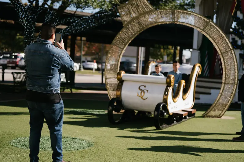 Located at Town Square Gazebo, this is the perfect spot for elegant photo opportunities. Pose with a carriage and horse, oversized presents, a grand Christmas tree, sleighs, and more. It’s sure to be the most photographed area!